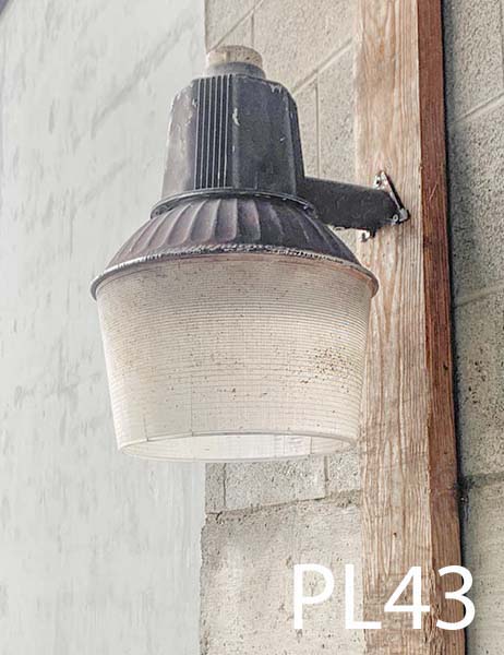 PL43- Qty-3. Brown aged aluminum light with acrylic lens and cord. Light can be either tungsten or 150W high pressure sodium.