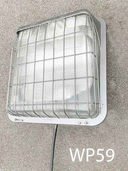 WP59-Qty-1. Grey large wall pack with cage and cord. 24″ x 24″